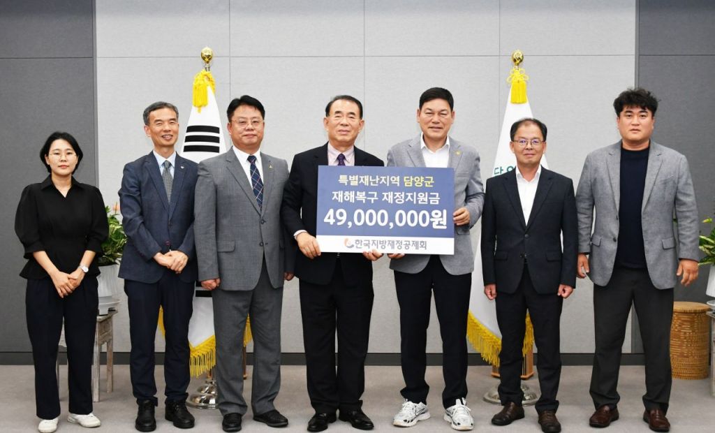 전남 담양군(군수 정철원)은 특별재난지역 선포에 따라 한국지방재정공제회로부터 피해 복구와 군민 생활 안정을 위한 재해복구 재정지원금 4,900만원을 지원받았다고 10일 밝혔다.