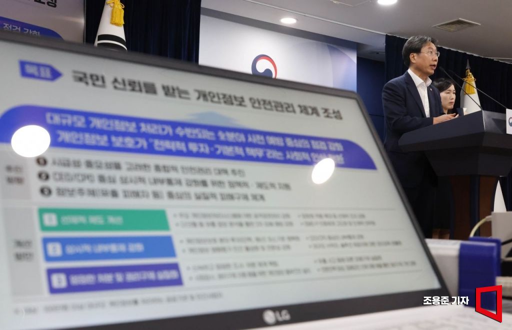 최장혁 개인정보위원회 부위원장이 11일 서울 종로구 정부서울청사에서 SKT 고객정보 유출사고 계기 '개인정보 안전관리 체계 강화 방안' 중점 추진에 대해 발언하고 있다.