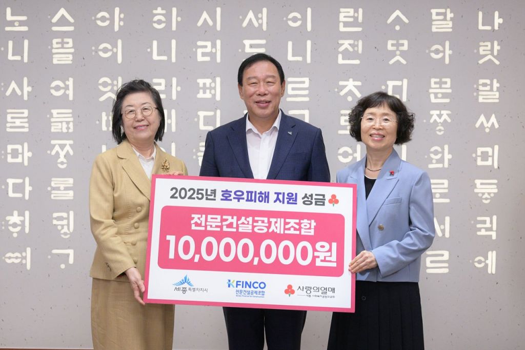 세종시는 전문건설공제조합(이사장 이은재)이 11일 시청 세종실에서 전동면 호우 피해복구 지원 성금으로 1000만 원을 기탁했다고 밝혔다. 이날 성금은 지난 7월 극심한 폭우로 큰 피해를 보고 특별재난지역으로 선포된 전동면 지역 주민의 조속한 일상 회복을 위해 이뤄졌다. 전달식에는 최민호 시장과 이은재 전문건설공제조합 이사장, 이희정 세종사회복지공동모금회 사무처장 등이 참석했다.