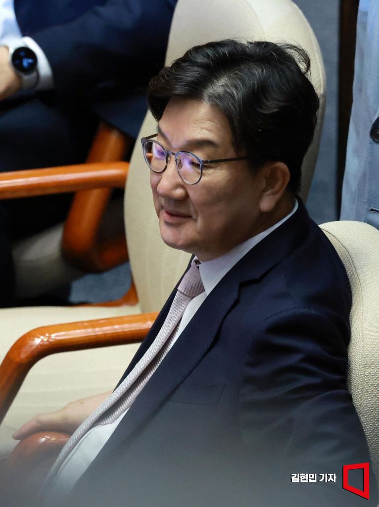 불법 정치자금 수수 혐의로 구속 영장이 청구된 국민의힘 권성동 의원이 9일 자신의 체포동의안이 보고되는 국회 본회의에 출석해 자리에 앉아 있다. 2025.9.9 김현민 기자
