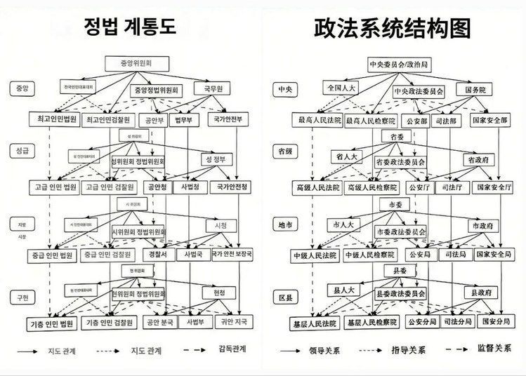 그러면서 민주당의 수사개편안과 중국 사법체계도를 올리고 "비교해보라. 똑같다"며 "이래서 중국 유학파 출신 김민석 국무총리가 수사체계를 총괄하도록 설계했나"라고 덧붙였다.