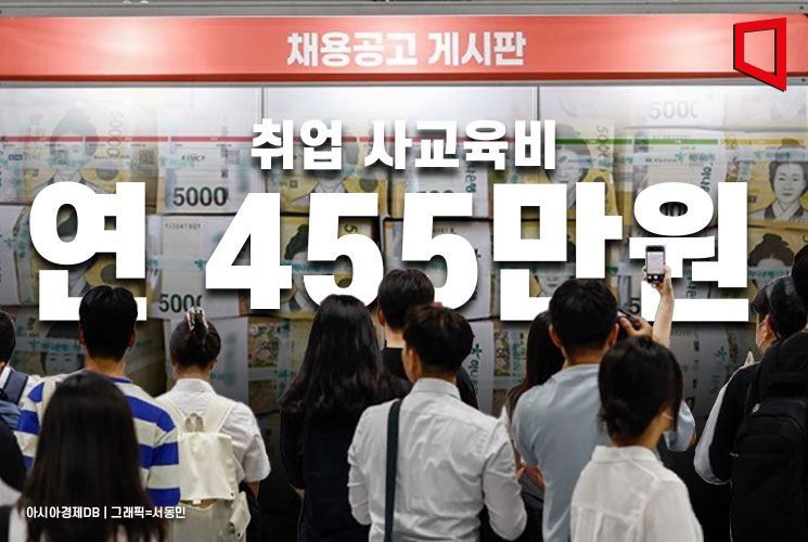 사교육을 받은 취준생들은 월평균 38만원, 연간 약 455만원을 지출한 것으로 조사됐다. 4년전(218만원)보다 두배 넘게 늘어난 규모다. 잡코리아 관계자는 "코로나19 이후 채용 환경이 크게 바뀌고 물가 상승까지 겹치면서 청년들의 경제적 부담이 커졌다"고 설명했다.