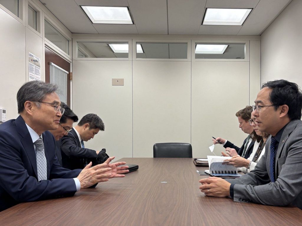 조현 외교부 장관과 앤디 김 미 연방 상원의원이 11일(현지시간) 미국 워싱턴D.C.에서 면담하고 있다. 외교부 연합뉴스