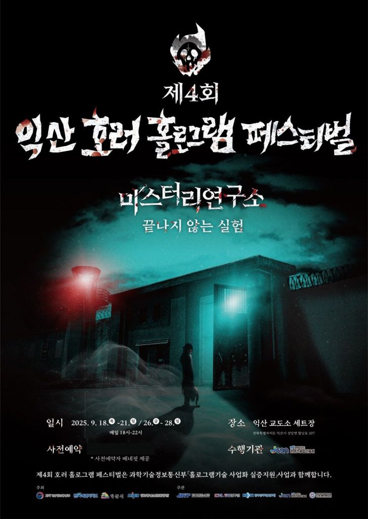 한편 '제4회 익산 호러 홀로그램 페스티벌'은 익산시, 과학기술정보통신부, 전북도, 정보통신산업진흥원이 지원하는 '홀로그램기술 사업화 실증지원 사업' 일환으로 추진되며, 전북콘텐츠융합진흥원에서 주관한다.