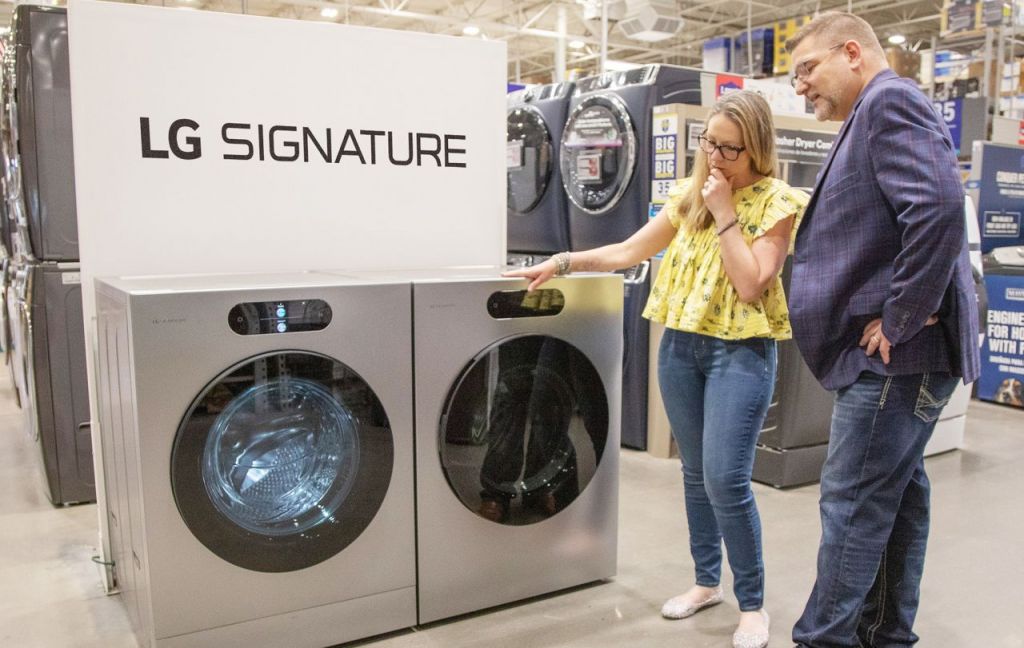 LG 시그니처 세탁기와 건조기가 미국 매장에 전시돼 있다. LG전자
