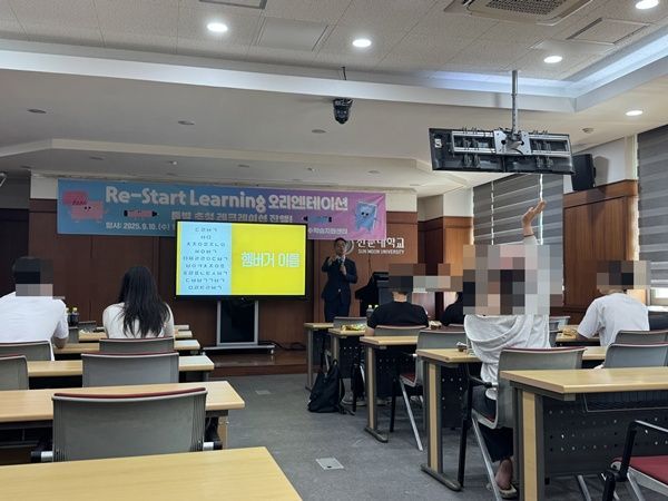 선문대학교는 지난 10일 본관에서 학사경고자 등 학업 부진 학생을 대상으로 'Re-Start Learning' 오리엔테이션과 특별 초청 프로그램을 진행했다고 15일 밝혔다.