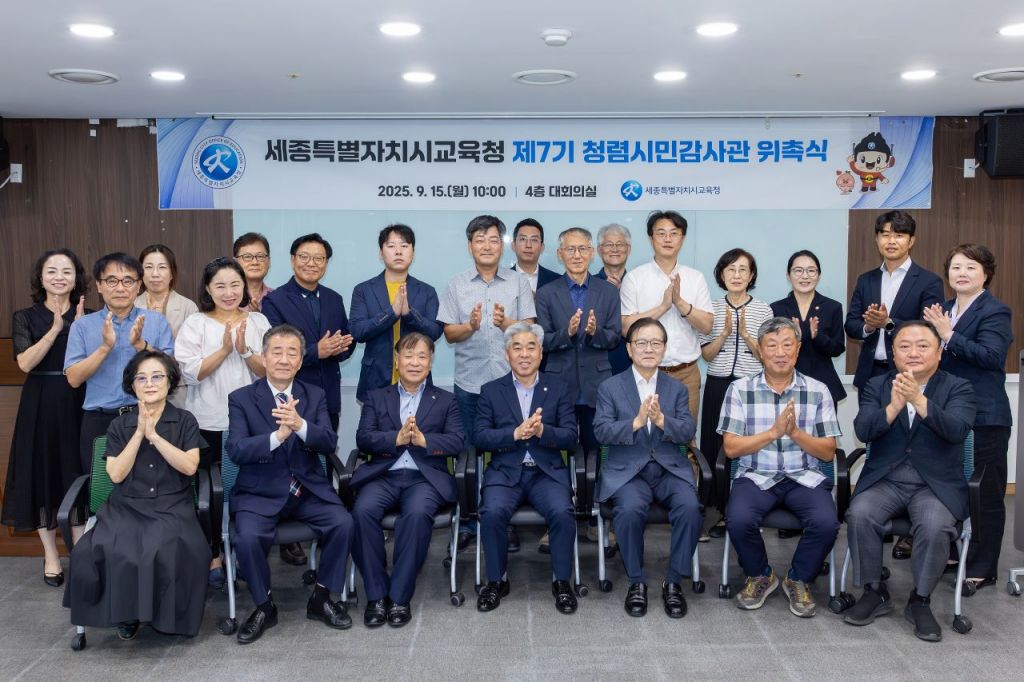 이날 위촉식에서는 천범산 세종교육감 권한대행이 제7기 청렴 시민 감사관에게 위촉장을 수여하고 학교 현장의 공정성과 투명성 강화를 위한 적극적인 활동을 당부했다. 이어진 연수에선 시민감사관 제도의 이해와 감사기법 등을 주제로 감사역량 강화의 시간을 가졌다.