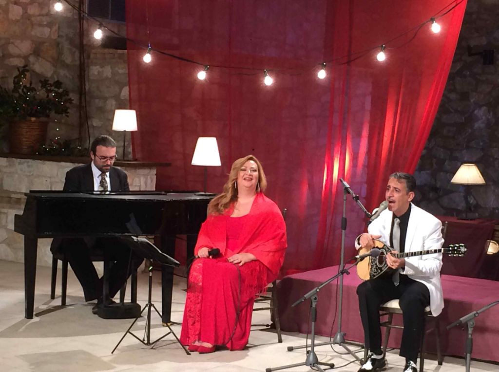 보컬 스타브룰라 마놀로풀루(가운데)와 부주키 그리고리오스 바실라스(오른쪽)