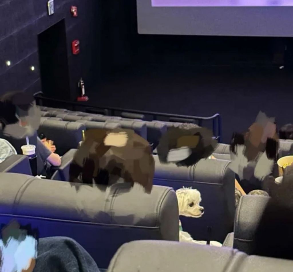 영화관 상영관에서 한 관객이 말티즈로 추정되는 강아지를 무릎에 올려두고 영화를 보는 모습이 공개돼 논란이 일고 있다.