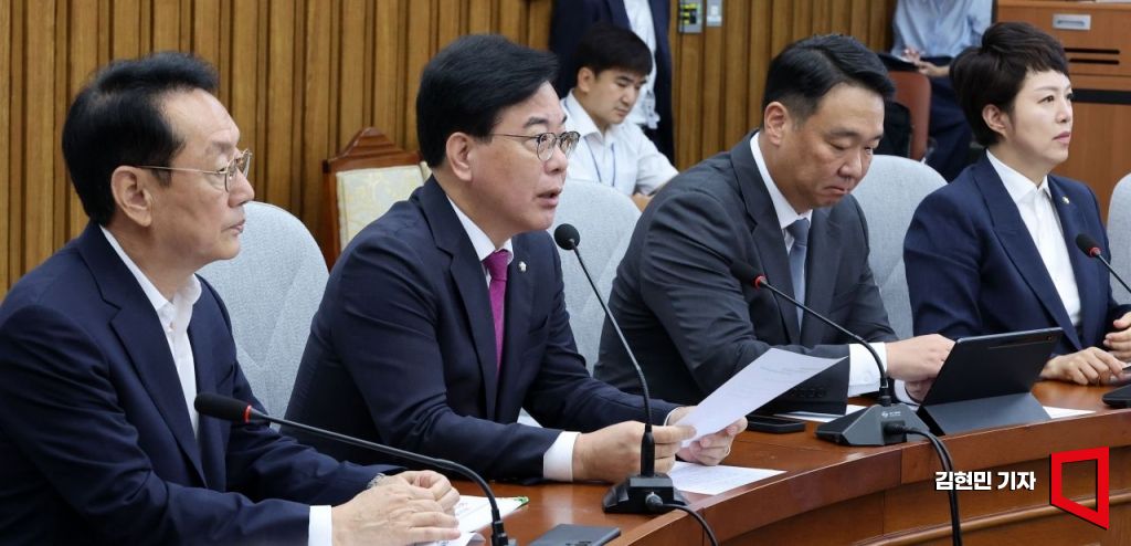 송언석 국민의힘 원내대표가 16일 국회에서 열린 원내대책회의에서 발언하고 있다.