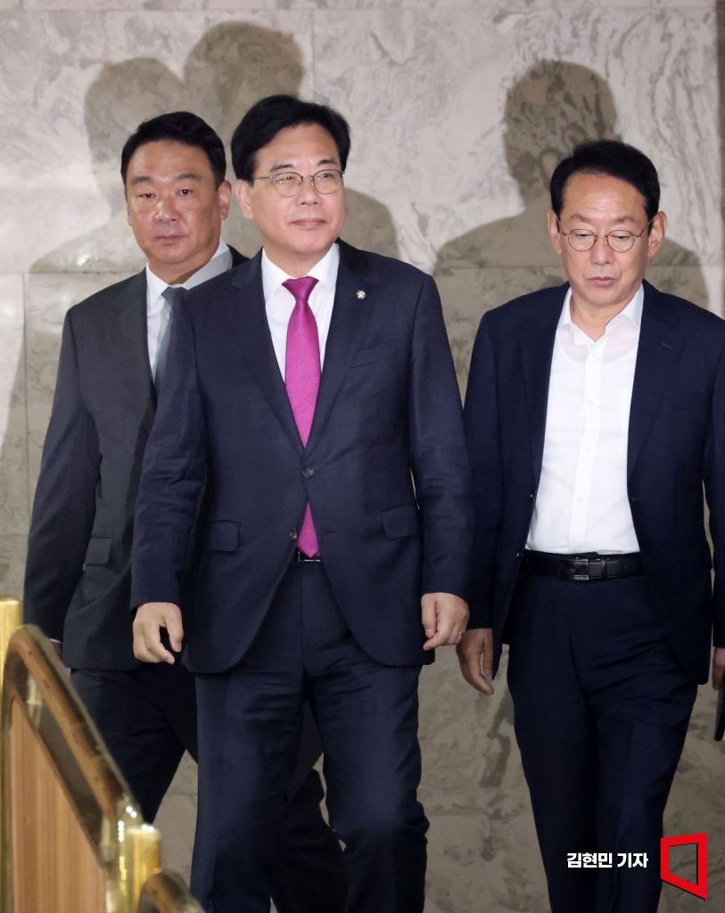 송언석 국민의힘 원내대표가 16일 국회에서 열린 원내대책회의에 참석하고 있다.