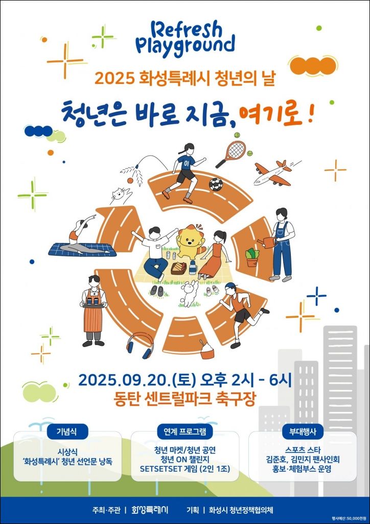 경기도 화성시는 청년의 날을 맞아 오는 20일 동탄 센트럴파크에서 '리프레시 플레이그라운드' 행사를 개최한다고 16일 밝혔다.