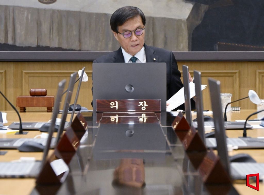 이창용 한국은행 총재가 28일 오전 서울 중구 한국은행에서 열린 금융통화위원회에서 의사봉을 두드리고 있다.2025.08.28 사진공동취재단