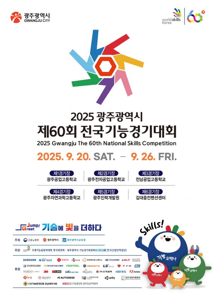 광주시는 오는 20~26일 일주일간 '제60회 전국기능경기대회'를 개최한다고 16일 밝혔다. '그레이트 점프(Great Jump)! 기술에 빛을 더하다'를 슬로건으로 열리는 이번 대회에는 전국 17개 시·도에서 선발된 선수와 지도교사, 임원, 자원봉사자 등 1만3,000여명이 참가한다.