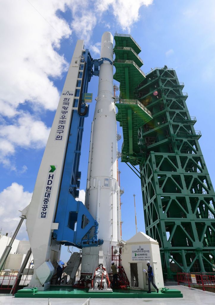 발사대에 세워지고 있는 누리호 4차 발사체. 우주청 제공