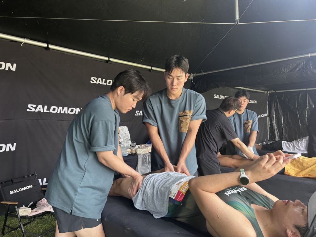 살로몬 트레일 러닝 대회는 산악 지형을 달리는 대표적인 러닝 행사로, 참가자들은 코스 특성상 발목, 무릎, 허리 등 근골격계 피로와 부상을 쉽게 겪는다. 이에 동의과학대 봉사팀은 마사지, 근육 이완, 스트레칭, 테이핑 등 전문적인 컨디셔닝 서비스를 제공해 선수들의 회복과 경기력 유지에 실질적 도움을 줬다.