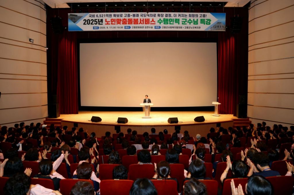 전남 고흥군(군수 공영민)은 17일 문화회관 김연수실에서 노인맞춤돌봄서비스에 종사하는 전담사회복지사와 생활지원사 214명을 대상으로 '따뜻한 돌봄, 행복한 동행, 희망찬 고흥'을 주제로 군수 초청 특강을 개최했다.