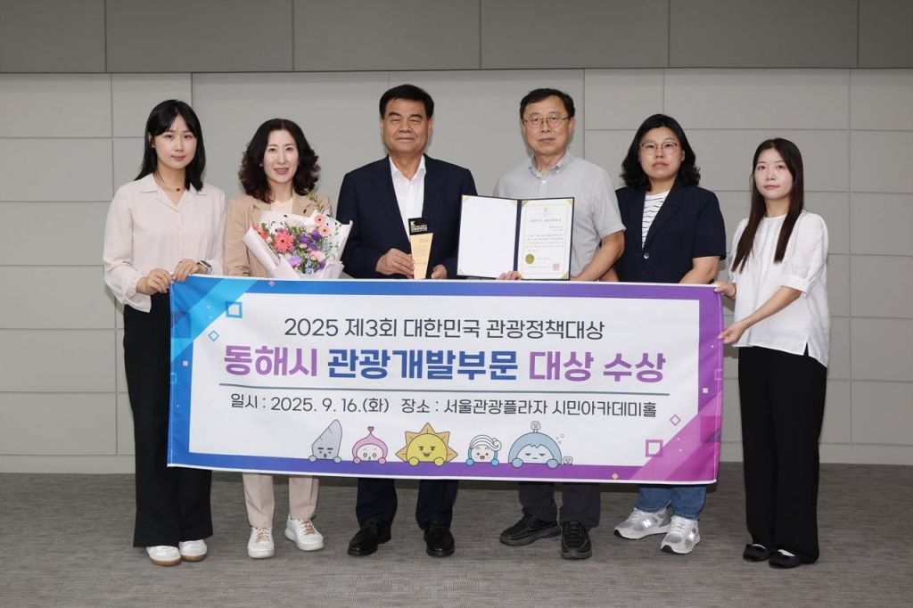 강원도 동해시는 지난 7월 2025 제3회 대한민국 관광정책대상 '관광개발부문 대상'에 선정되어 지난 16일 서울관광플라자에서 열린 시상식에서 대상을 수상했다고 18일 밝혔다.