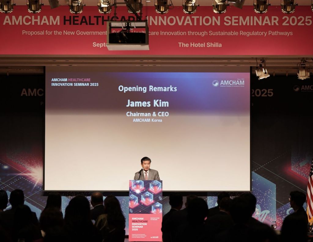 제임스 김 암참 회장 겸 대표이사는 개회사를 통해 "보건의료는 한국 정부의 핵심 국정 과제인 ABCDE(인공지능·바이오테크놀로지·문화콘텐츠·방위·우주항공·에너지 전환)의 중심에 있다"고 강조하며 특히 "의약품 가격과 급여 제도에서 혁신을 뒷받침할 수 있는 정책 개혁은 환자의 치료 접근성을 넓히는 동시에 한국이 글로벌 바이오 리더로 도약하는 데 핵심적인 역할을 하게 될 것"이라고 말했다.