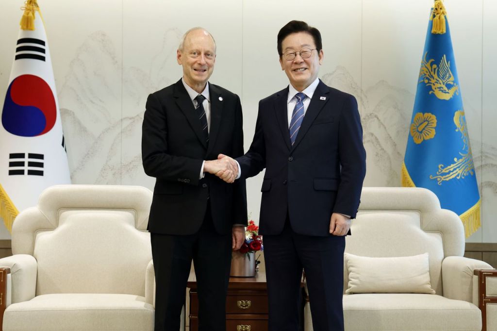 이 대통령은 "상식적이고 정의로운 사회라는 것이 말로는 쉽지만, 현실에서는 매우 어렵다"며 "전 세계가 정치적 혼란을 많이 겪고 있고 극우의 발호로 사회적 안전성도 저해되고 있다"고 언급했다.