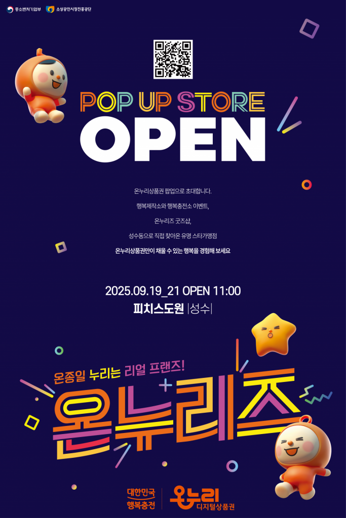 팝업스토어는 ▲정책홍보존 ▲온누리이벤트존 ▲가맹점 체험존 등으로 구성돼 다양한 체험형 이벤트를 통해 방문객에게 온누리상품권에 대한 긍정적인 경험을 제공할 예정이다.