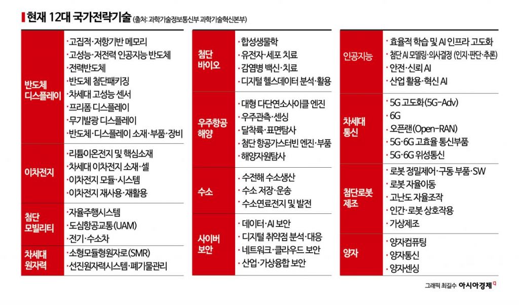 반면 원자력은 전략기술에서 빠질 가능성을 배제할 수 없다. 차세대 원자력은 현 정부 국정과제에서도 제외됐다. 현재 12개 국가전략기술에는 소형모듈원자로(SMR)와 선진원자력시스템·폐기물 관리가 포함돼 있다. 이 대통령은 이미 "한국은 아직 독자적 SMR 기술이 없는 상황"이라고 지적하며 기존 전략기술의 실효성에 의문을 제기한 바 있다.