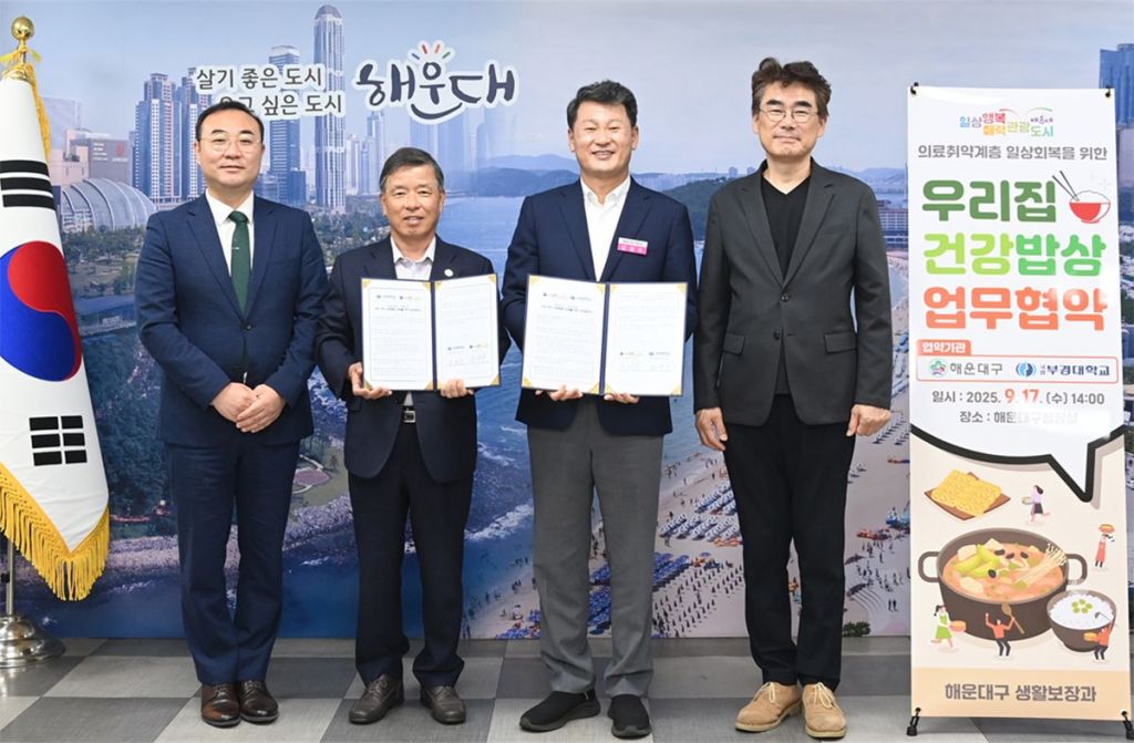 국립부경대학교(총장 배상훈)와 부산 해운대구청(구청장 김성수)이 지난 17일 지역 의료취약계층의 영양과 식생활 관리를 지원하기 위한 협약을 체결했다.