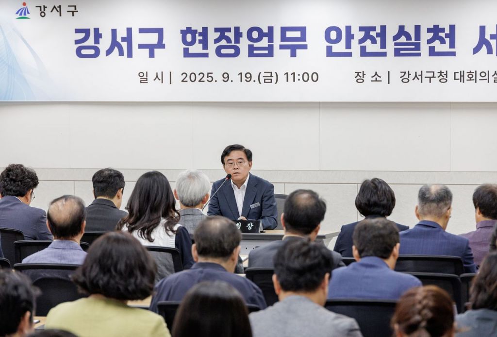 서울 강서구(구청장 진교훈)는 19일 구청에서 '현장업무 안전 실천 서약식'을 열고 안전사고 없는 사업장 조성을 위한 실천 의지를 다졌다.