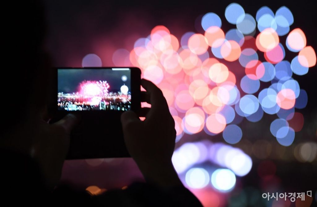 서울세계불꽃축제의 화려한 불꽃이 밤하늘을 수놓고 있다. 문호남 기자 munonam@