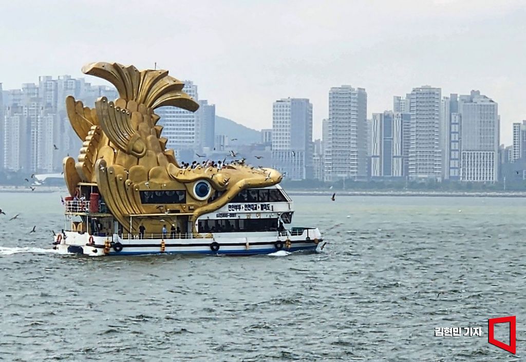 인천 앞바다를 운항하는 유람선 중에는 황금색 물고기 모양의 배도 있다. 이름은 '금어호'. 항구도시 넓은 바다에서 눈길 끌려면 이 정도는 해줘야 된다.