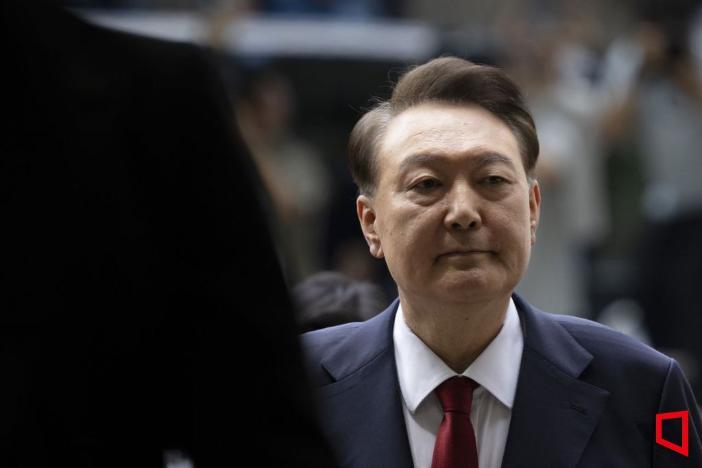 윤석열 전 대통령이 9일 오후 구속 전 피의자 심문(영장실질심사)을 받기 위해 서울 서초구 서울중앙지방법원으로 들어서고 있다. 이날 영장실질심사는 남세진(사법연수원 33기) 영장전담 부장판사 심리로 열린다. <2025.07.09 사진공동취재단>