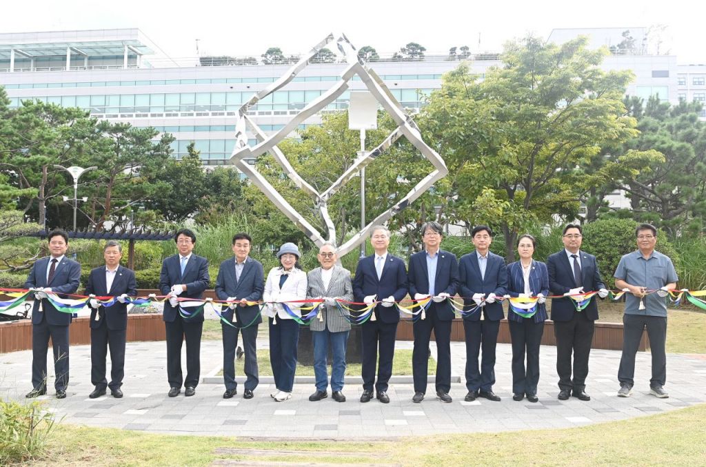 국립부경대학교(총장 배상훈)가 지난 22일 오후 한어울터에서 권달술 동문 조형물 작품 기증 기념 테이프 커팅식을 개최했다.