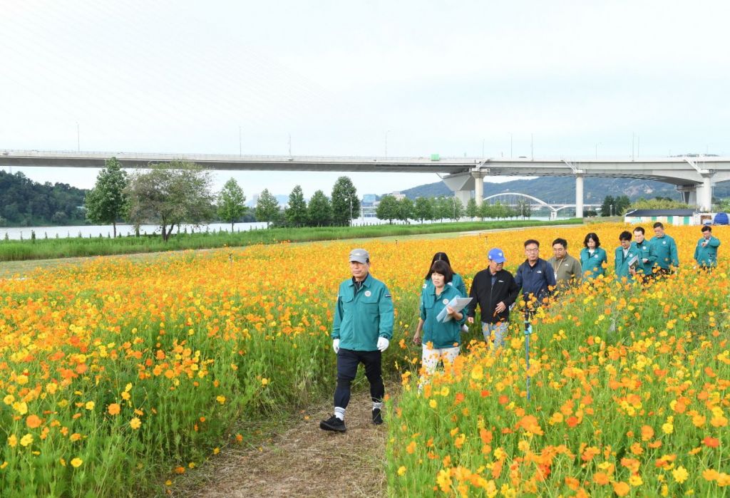 백경현 구리시장이 오는 26일 개막하는 '2025 구리 코스모스 축제'를 앞두고 지난 22일 구리한강시민공원에서 사전 현장 점검을 실시하고 있다. 구리시 제공