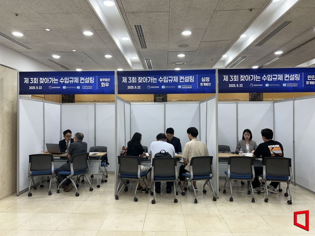 컨설팅 프로그램은 ▲ 미국 무역확장법 232조 관세 조치 동향 및 함량 가치 신고 방법 안내 ▲ 상호관세 동향 소개 ▲ 중견·중소기업 대상 수입 규제 대응 사업 안내에 이어 참여 기업별 1:1 맞춤형 상담으로 진행됐다.