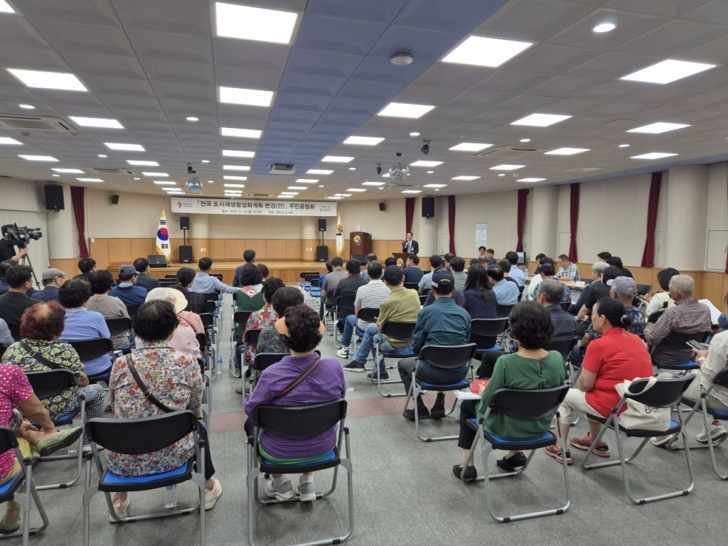 경기 연천군은 지난 19일 주민 100여 명이 참석한 가운데 전곡 도시재생(지역특화) 활성화계획 변경(안)에 대해 주민공청회를 실시했다.