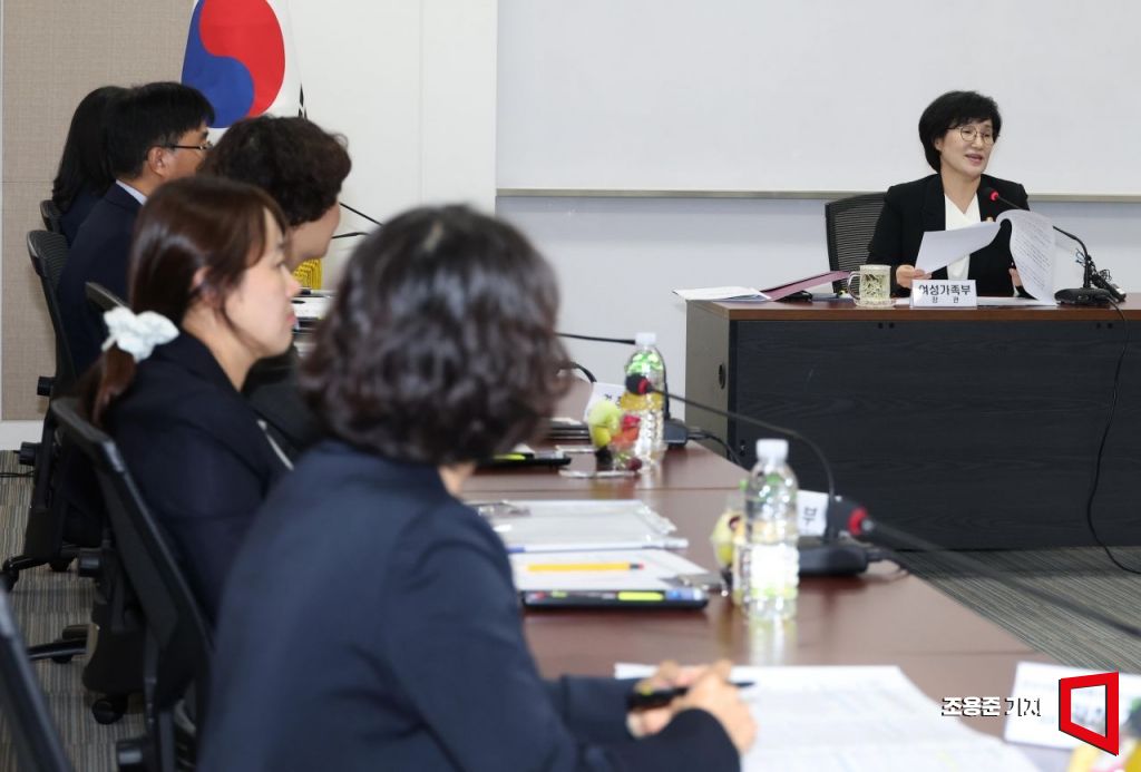 원민경 여성가족부 장관이 24일 서울 종로구 정부서울청사에서 열린 스토킹, 교제폭력 관련 대책회의에 참석, 모두발언을 하고 있다.
