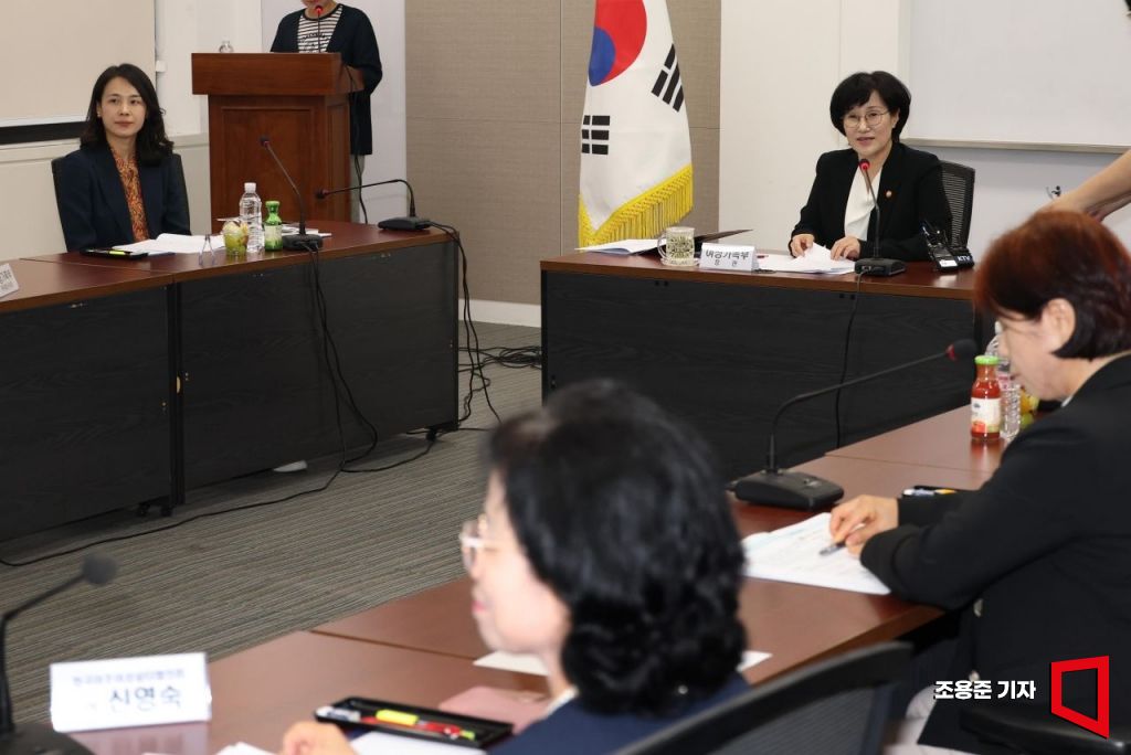 원민경 여성가족부 장관이 24일 서울 종로구 정부서울청사에서 열린 스토킹, 교제폭력 관련 대책회의에 참석, 모두발언을 하고 있다.