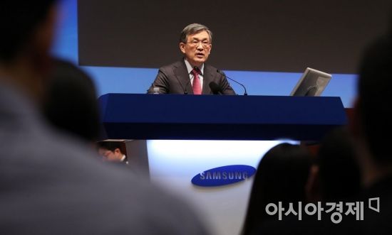 권오현 삼성전자 고문이 대표이사 회장을 맡았던 2018년 3월 서울 서초구 삼성전자 서초사옥 5층 다목적홀에서 열린 주주총회에서 인사말을 하고 있다. 김현민 기자
