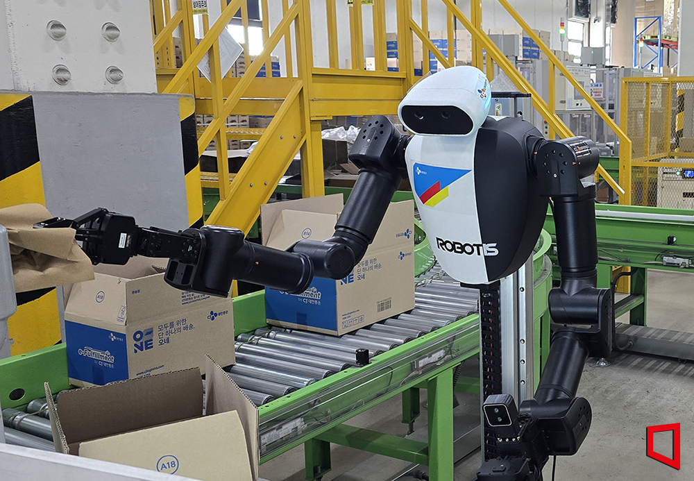 CJ대한통운은 9월부터 로보티즈 휴머노이드 로봇을 군포 풀필먼트센터에 배치해 현장 실증을 진행 중이다. 상품 포장 라인의 완충재 보충 작업에 투입해 운영 효율성과 안전성을 검증하고 있다.
