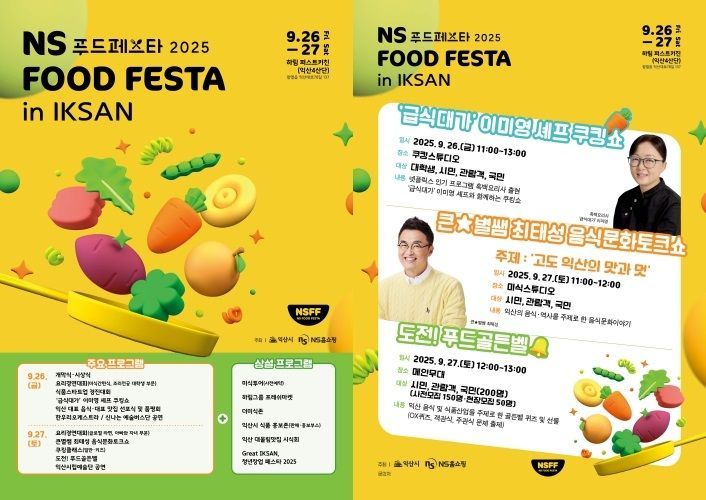 전북 익산시가 오는 26~27일 제4일반산업단지 내 하림 퍼스트키친에서 'NS푸드페스타 2025 in 익산'과 '그레이트 익산(Great Iksan) 청년창업 페스타 2025'를 연다.