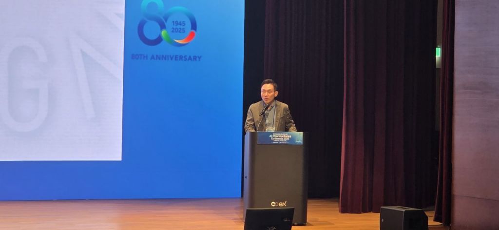 윤태영 서울대 생명공학부 교수(프로티나 대표)가 한국제약바이오협회가 25일 서울 강남구 코엑스에서 연 'AI 파마 코리아 컨퍼런스 2025'에서 강연하고 있다. 정동훈 기자