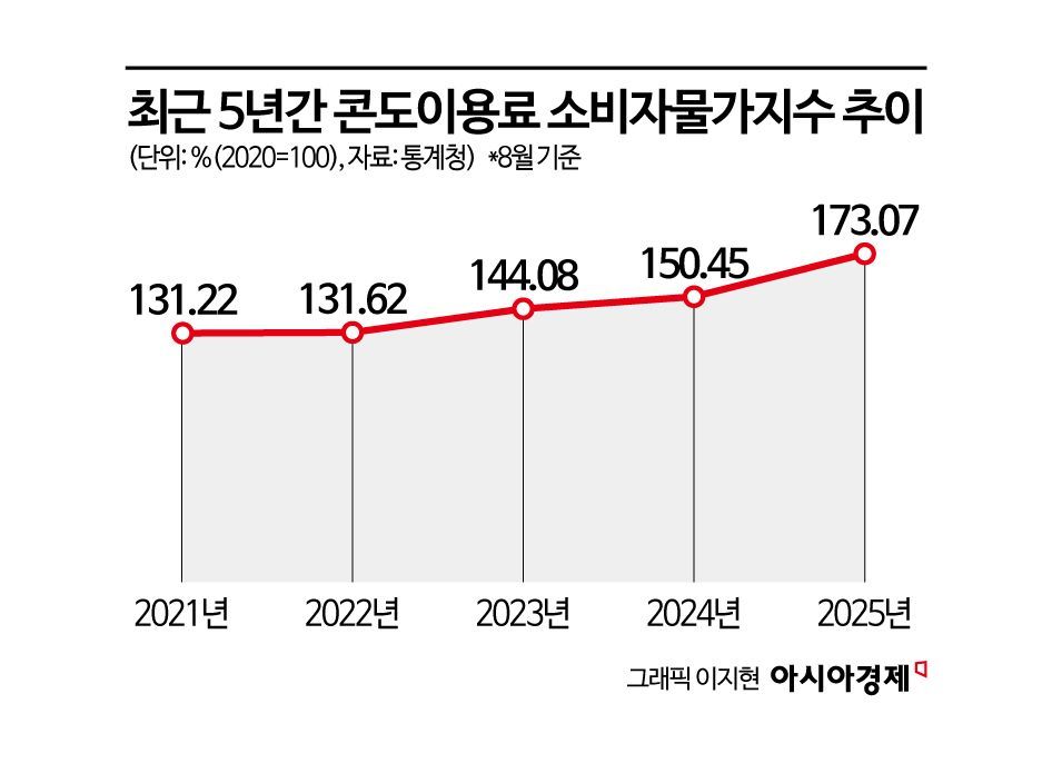 통계청에 따르면 지난달 콘도 이용료 소비자물가지수는 173.07(2020=100)로, 전년 동월 대비 15% 상승했다. 올해 들어 콘도 이용료는 두 자릿수 상승세를 이어가고 있으며, 특히 지난 1월(20.4%)과 5월(20.3%)에는 20%를 넘는 높은 상승률을 기록했다. 이는 2018년 2월(27.1%) 이후 최대폭 상승이다.