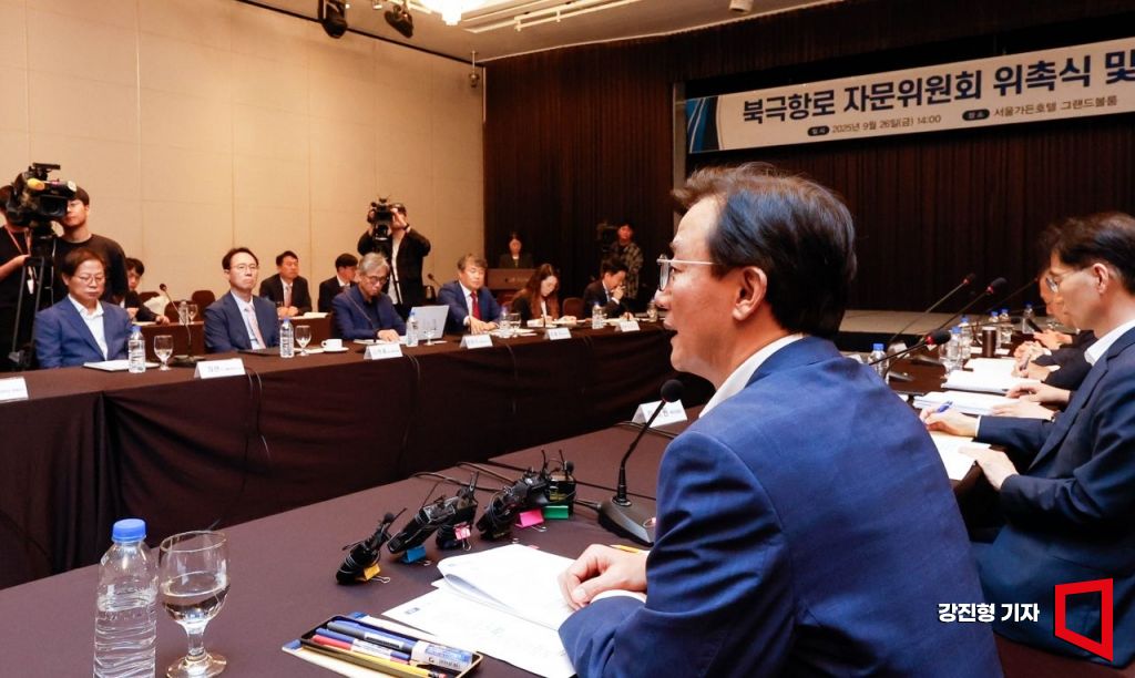 전재수 해양수산부 장관이 26일 서울 마포구 가든호텔에서 열린 '북극항로 자문위원회 위촉식 및 제1차 회의'에 참석해 모두발언 하고 있다.