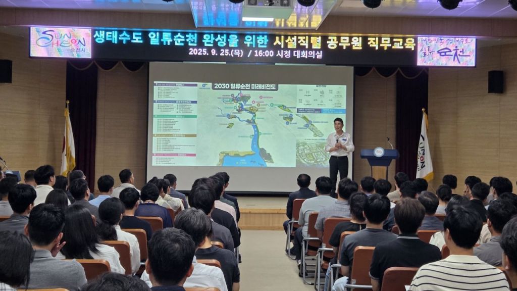전남 순천시는 지난 25일 시청 대회의실에서 토목·건축 등 시설직렬 전 직원 200여명을 대상으로 직무교육을 실시했다고 26일 밝혔다.