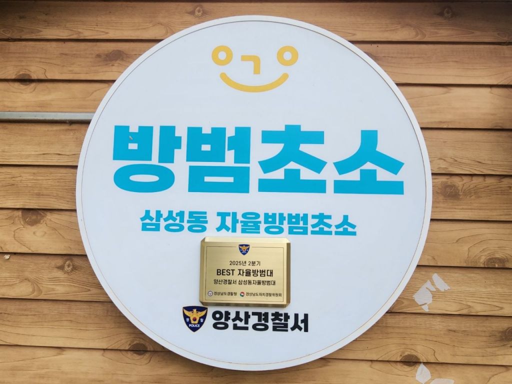 양산시 삼성동 자율방범대가 지난 25일 경남경찰청 2025년 2분기 '베스트 방범대'로 선정돼 기념 인증패를 받고 현판식을 가진 후 합동 순찰활동을 병행했다.