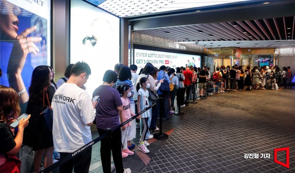 서울 시내의 한 면세점에서 입장하기 위해 외국인 관광객드이 줄을 서 있는 모습. 아시아경제DB