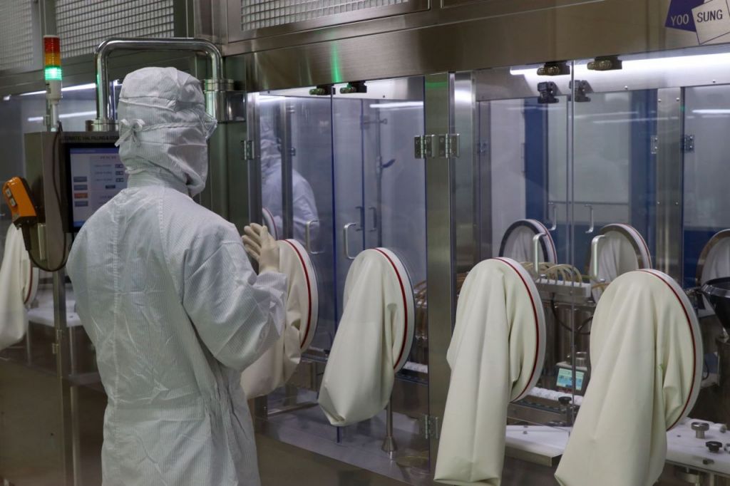 자생메디바이오센터 약침원외탕전실 직원이 약침 생산 과정을 살피고 있다. 자생한방병원
