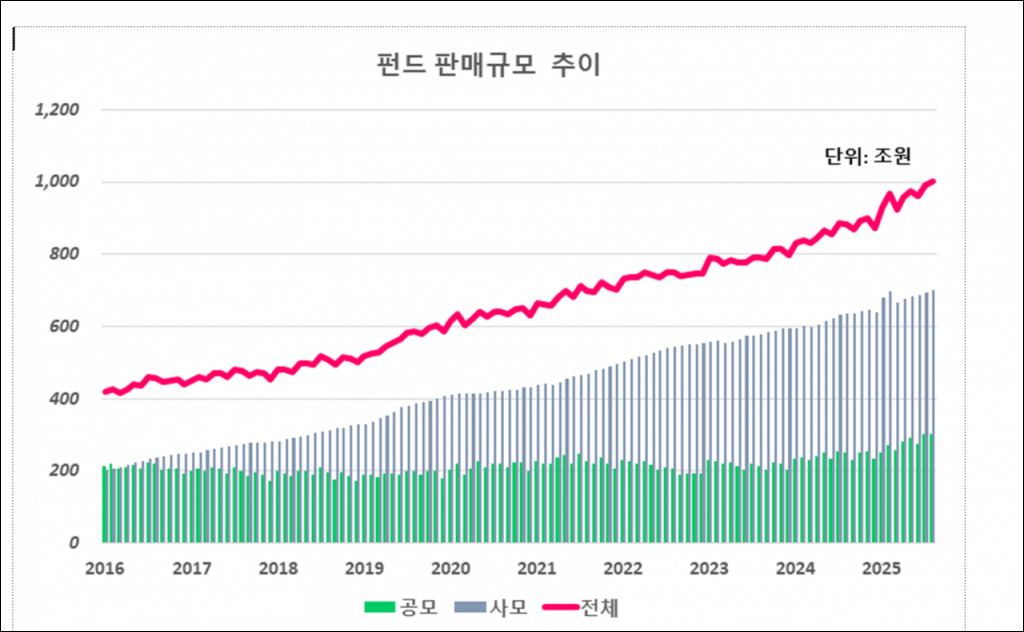 전체 펀드 판매잔고가 사상 처음으로 1000조 원을 돌파했다.