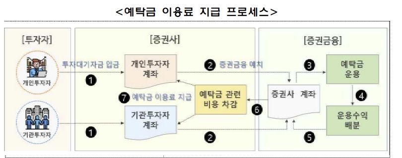 금감원은 "투자자가 보다 공정하고 투명하게 예탁금 이용료를 받을 수 있을 것으로 기대된다"며 "특히 개인·기관 간 차별 금지와 비용 산정 기준 명확화로 이용료율 상승효과도 예상된다"고 설명했다.