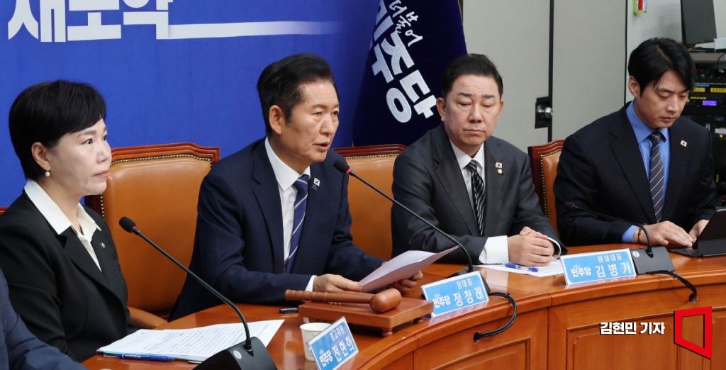 정청래 더불어민주당 대표가 29일 국회에서 열린 최고위원회의에서 발언하고 있다.